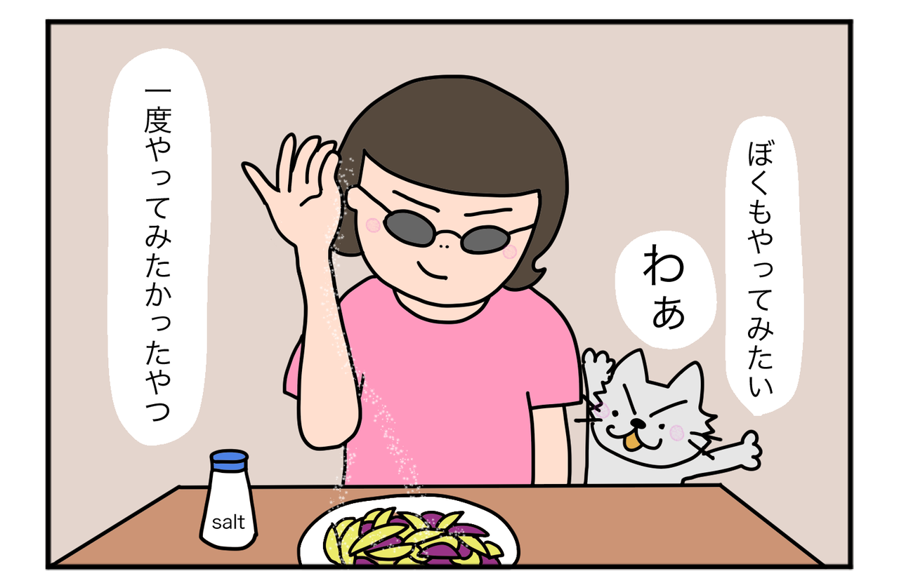 真似をして塩を振ってみる
