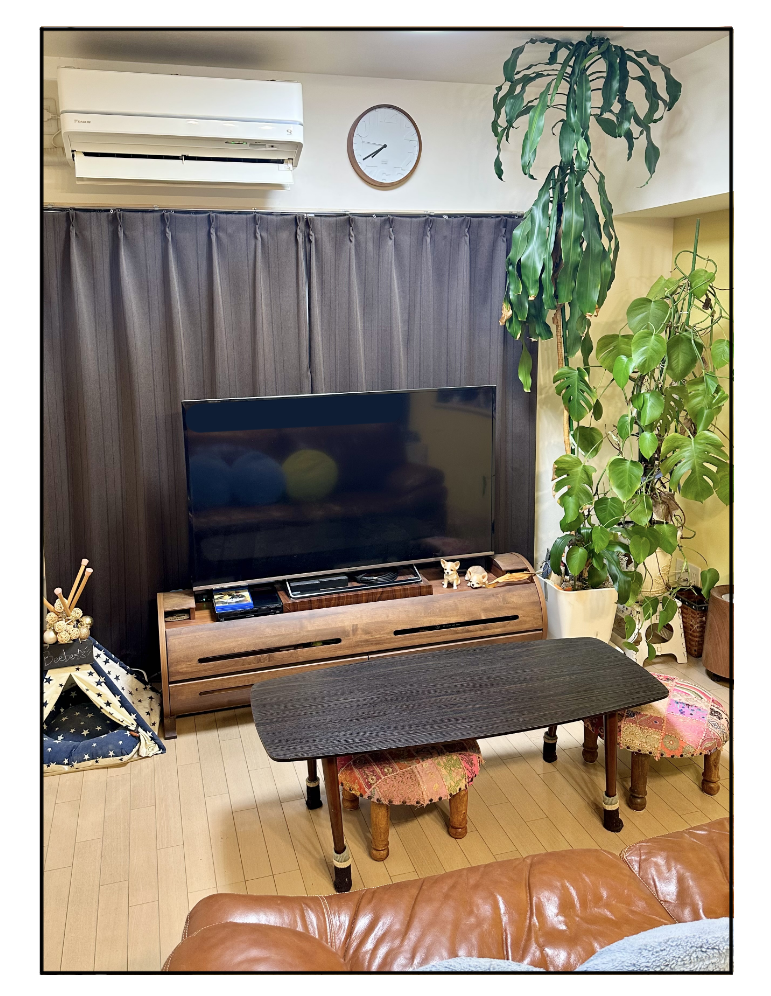 テレビの後ろの窓は