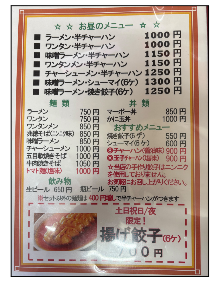 「チャーハン・餃子セット」で1300円